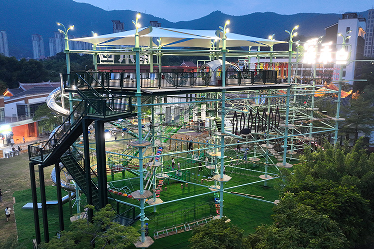鉆石塔拓展樂園是一項(xiàng)勇敢者的戶外休閑娛樂項(xiàng)目,它通過在鋼結(jié)構(gòu)或木結(jié)構(gòu)立柱間設(shè)置并搭建各種難易不同、風(fēng)格迴異、超強(qiáng)刺激的關(guān)卡障礙活動環(huán)節(jié)將立柱連成一條線路,玩家需要通過懸空橋梁、網(wǎng)道、步道、木桶、秋千、索道和其他趣味環(huán)節(jié)等方式進(jìn)行樹木間的探險,通過爬、滑、游、跨、跳、飛等動作越過所有障礙,到達(dá)終點(diǎn),讓你體驗(yàn)高空墜落與自由滑翔的快感,感受攀爬與穿越的刺激。